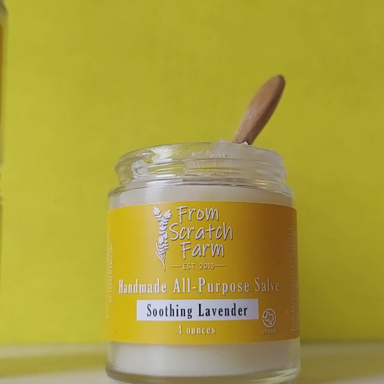 4 ounce jar of soothing, moisturizing ALL-PURPOSE SALVE. Or a 1 ounce sampler tin of soothing, moisturizing ALL-PURPOSE SALVE.